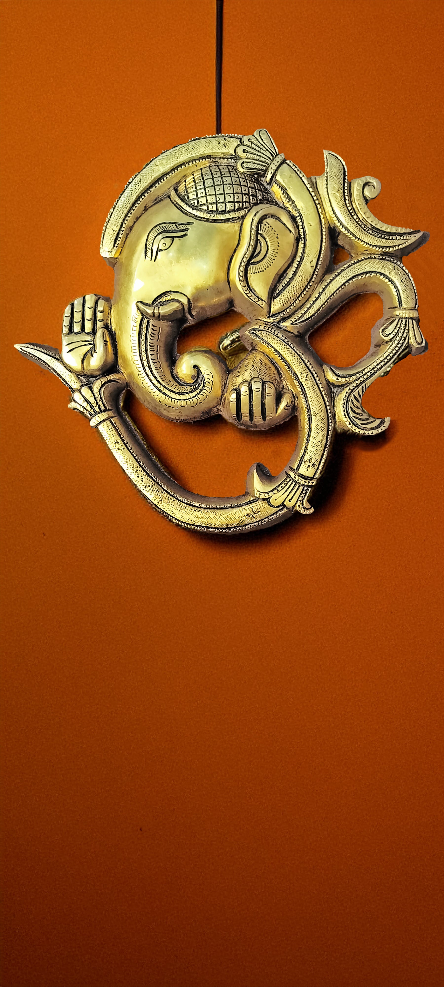 Invite blessings and auspicious beginnings into your home with this beautifully crafted Brass Aum Ganpati Wall Decor. This piece features Lord Ganesha, the remover of obstacles and the god of wisdom and prosperity, embraced by the sacred Aum symbol, representing the universe's primordial sound. The antique finish lends a timeless and reverent quality, making it a powerful symbol of faith and a source of positive energy for your living space. A perfect addition to your home altar, meditation space, or any area where you seek divine blessings.
