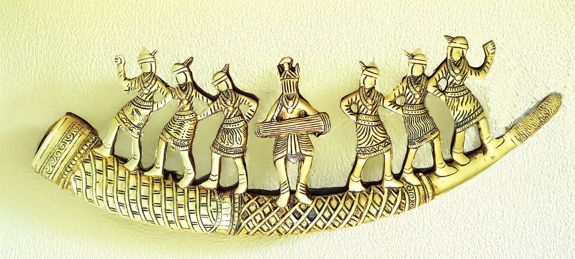 Celebrate the vibrant spirit of Indian festivities with this exquisite Brass Dancing Music Wall Decor. This handcrafted piece captures the essence of traditional celebrations, depicting figures immersed in joyful dance and music. Crafted from gleaming brass, this wall decor reflects the rich cultural heritage of India, adding a touch of timeless elegance and festive cheer to any space. Perfect for adding a touch of cultural charm to your home during Diwali, Navratri, weddings, or any special occasion.