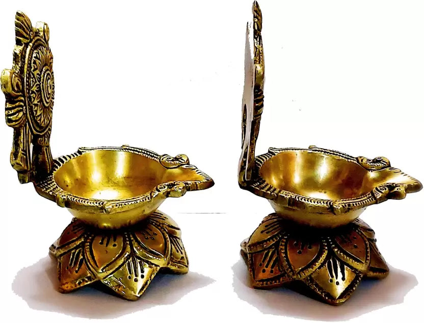 Messing Shankh Chakra Diya mit Lotusbasis