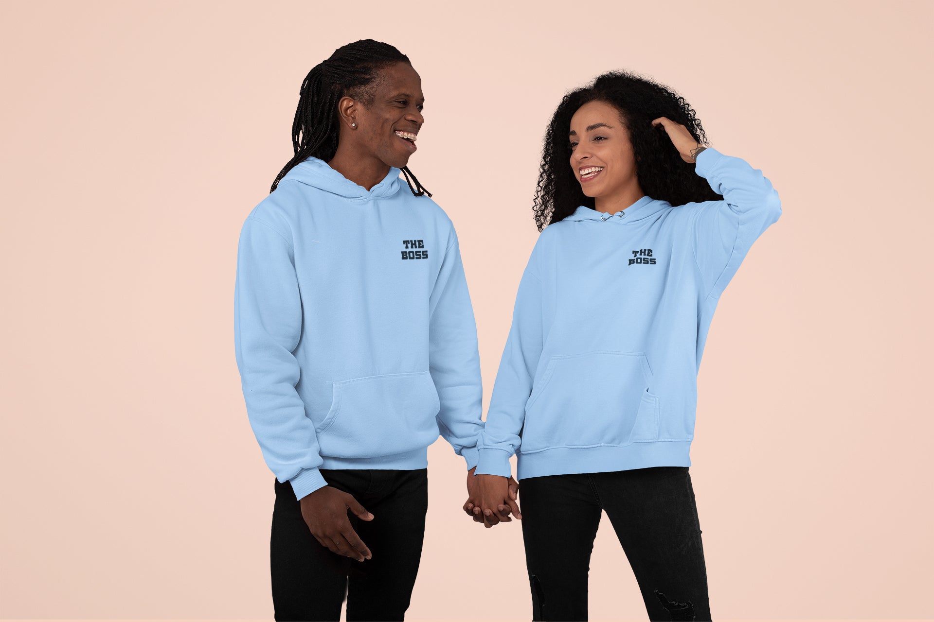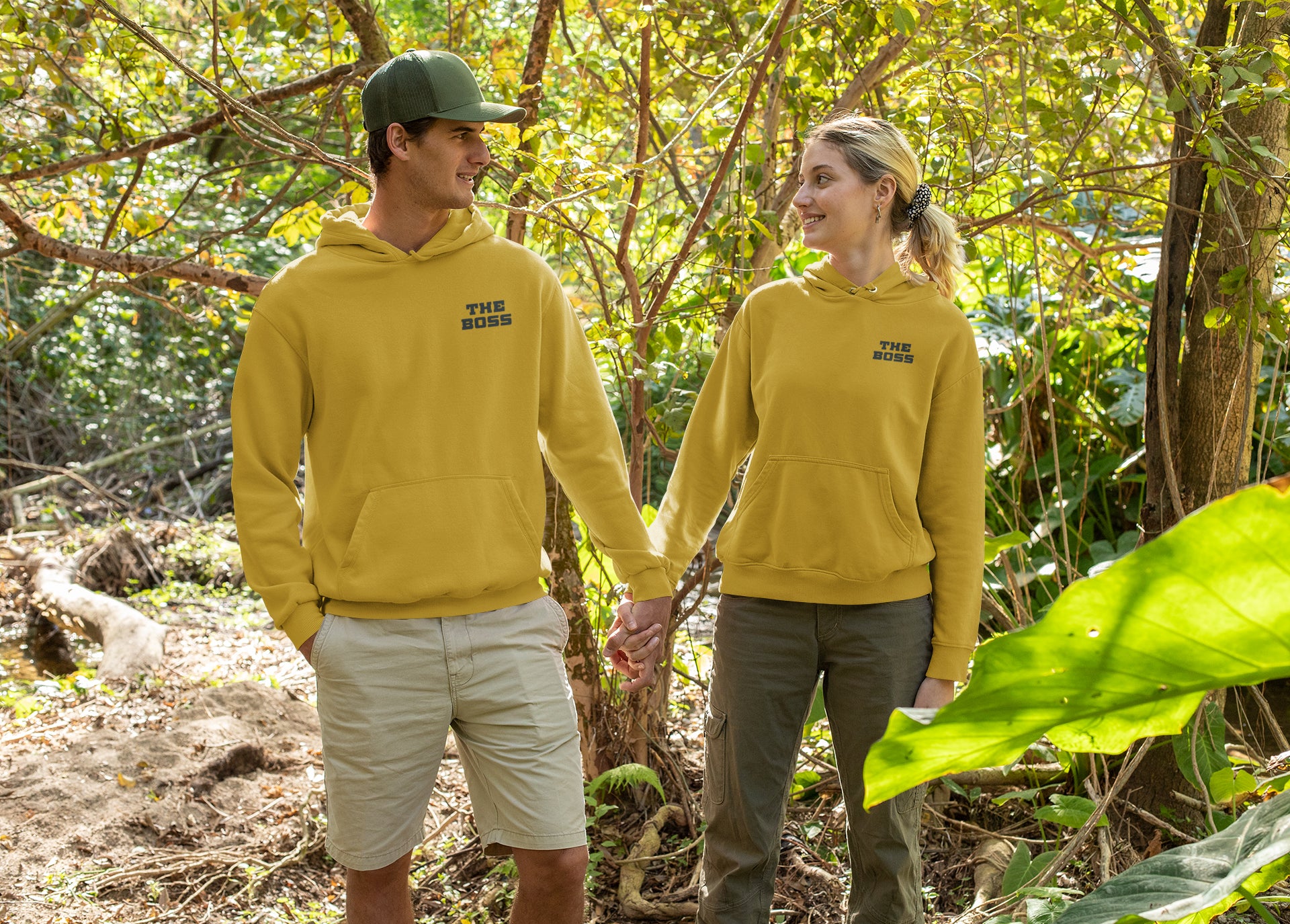 Unsere Hoodies bestehen aus 320 g/m² supergekämmtem, biogewaschenem Stoff mit doppelter Naht und geripptem Derby-Bund.