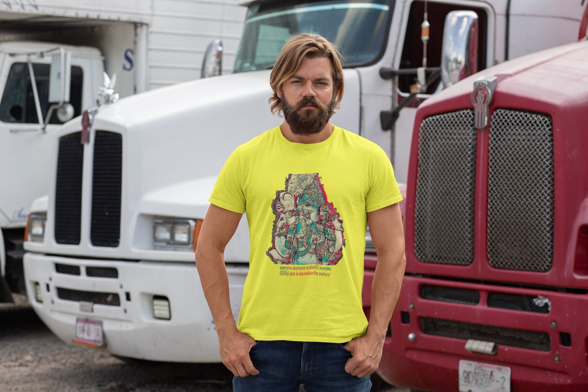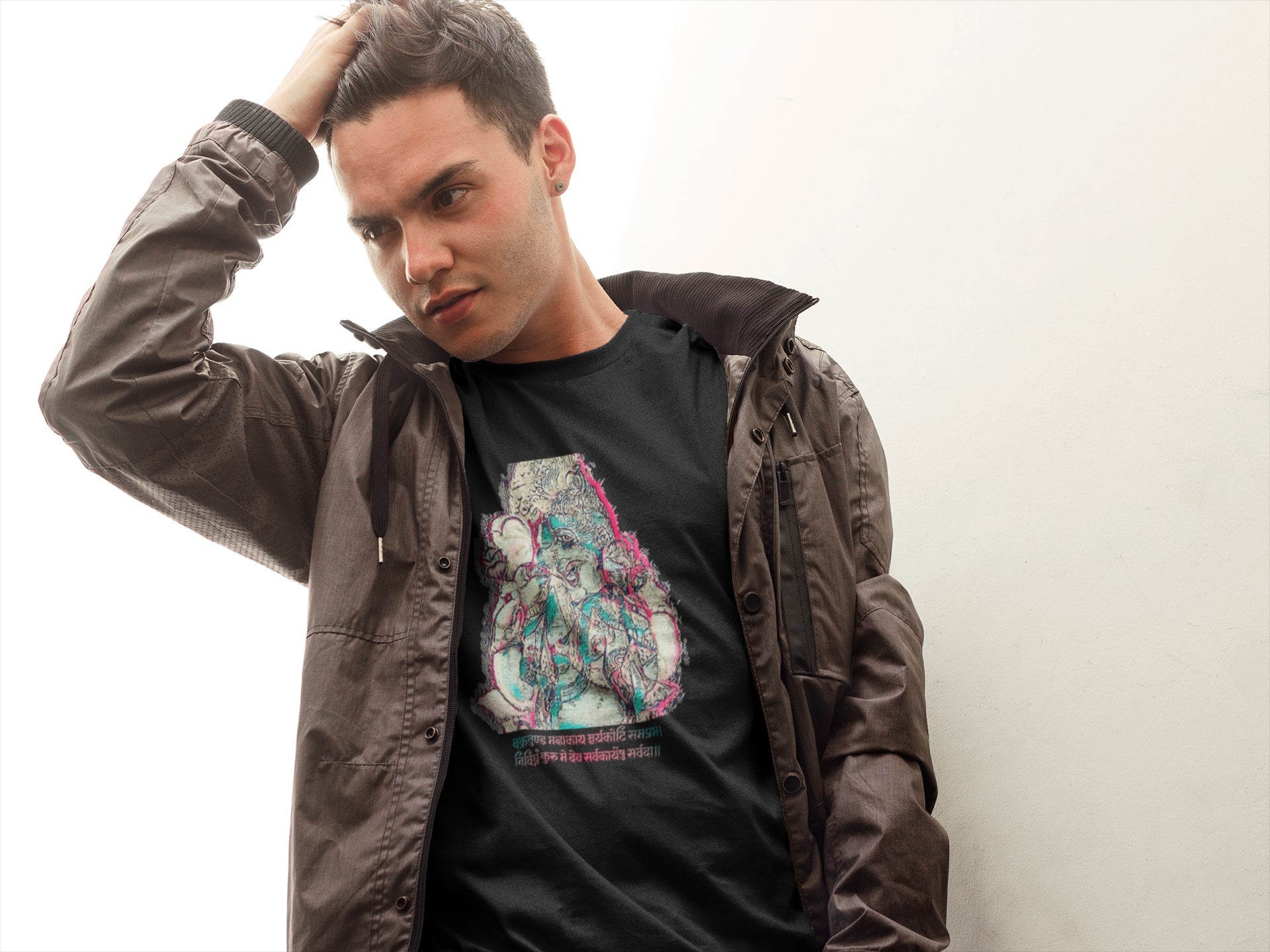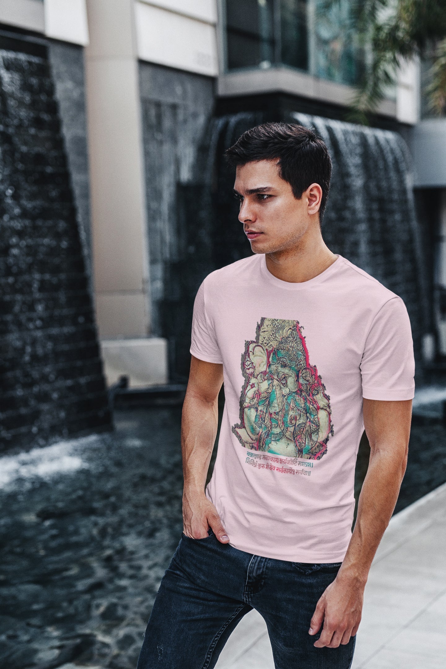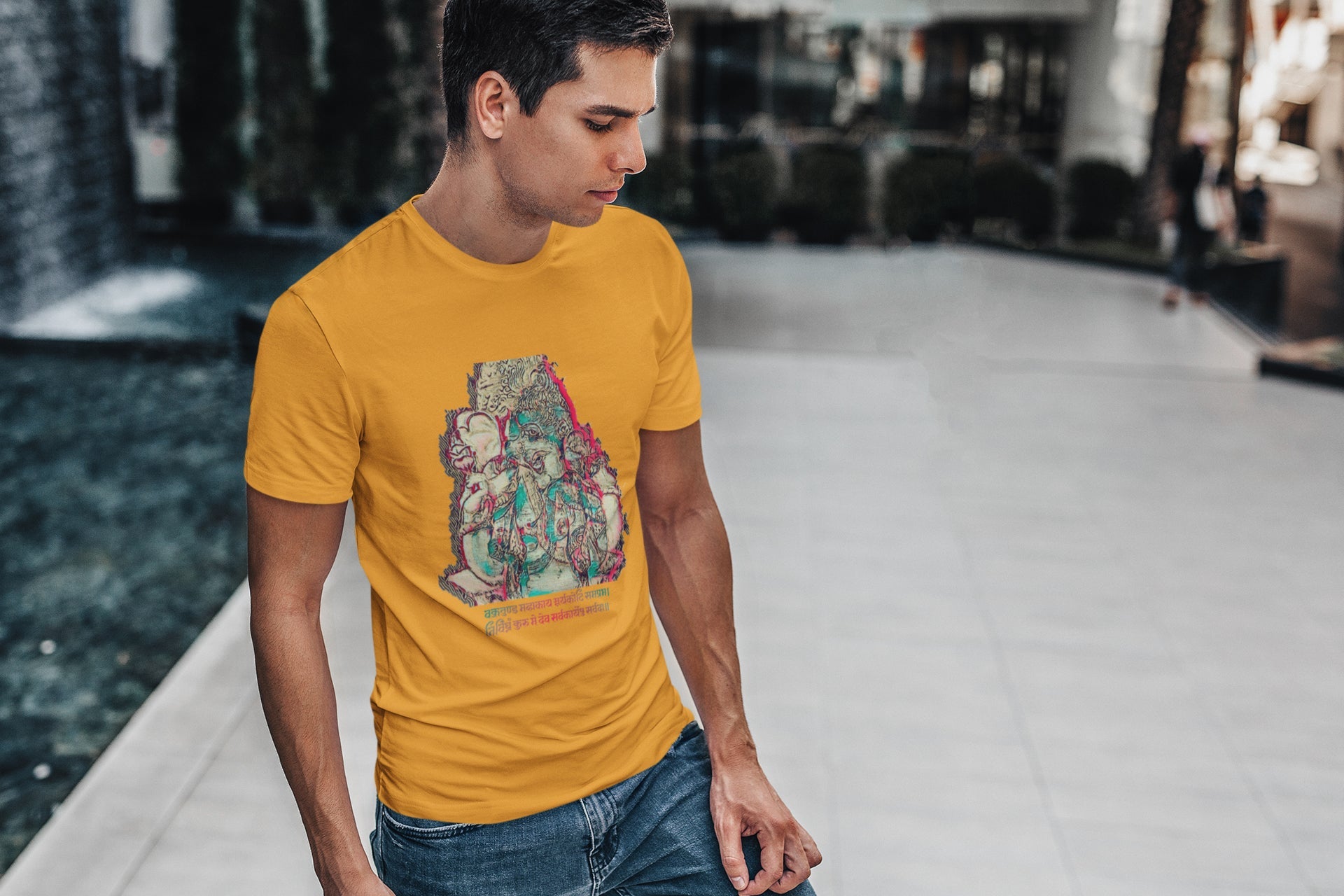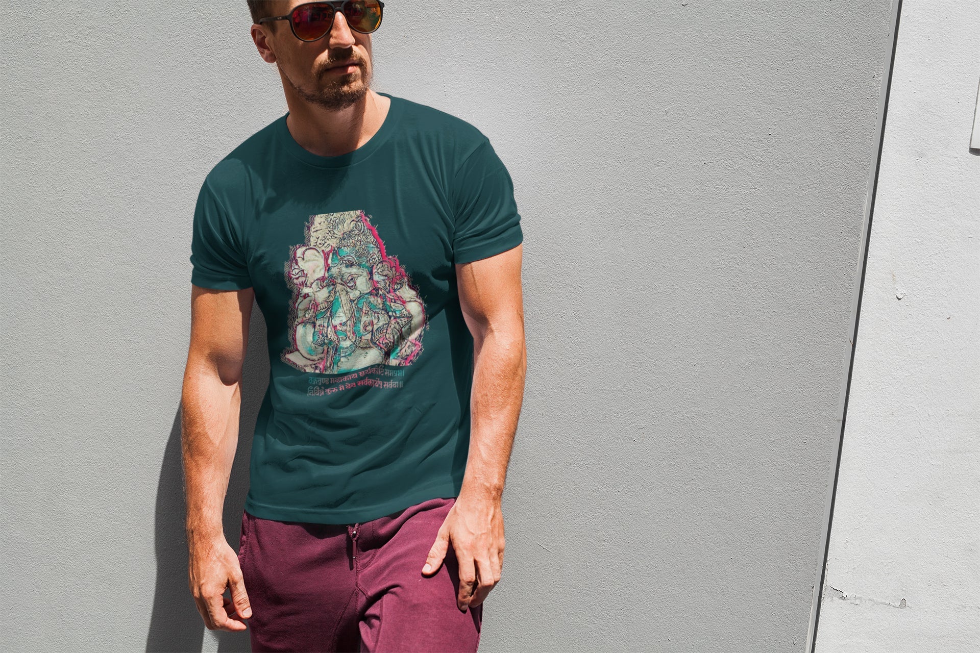 Unser Ganpati Fresco Herren-Sommer-T-Shirt ist ein wahres Meisterwerk, das Stil, Spiritualität und Kunstfertigkeit vereint. Dieses T-Shirt verfügt über einen atemberaubenden Ganpati-Fresko-Print und ist somit die perfekte Ergänzung für Ihre Sommergarderobe.