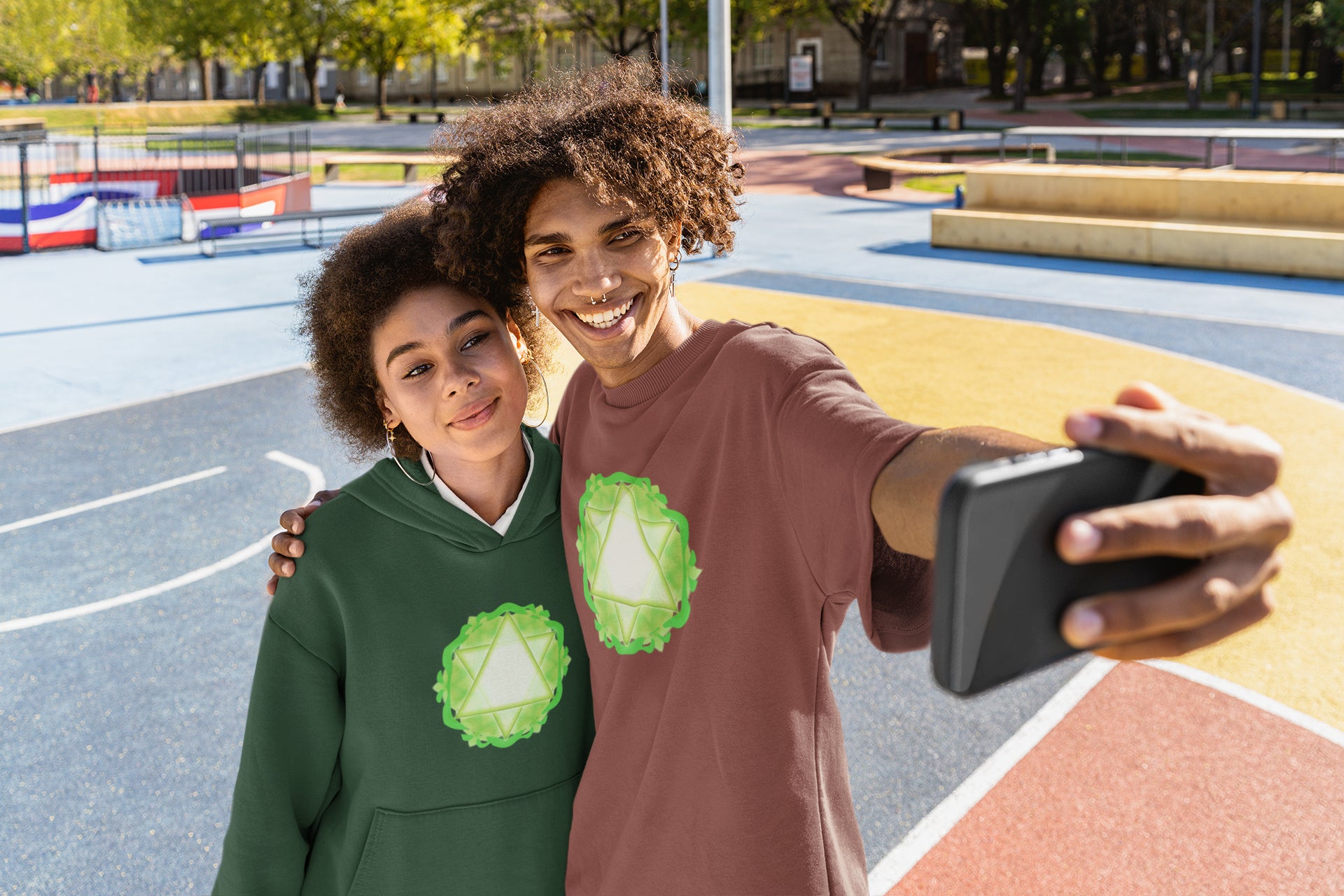 Unsere Hoodies bestehen aus 320 g/m² supergekämmtem, biogewaschenem Stoff mit doppelter Naht und geripptem Derby-Bund.