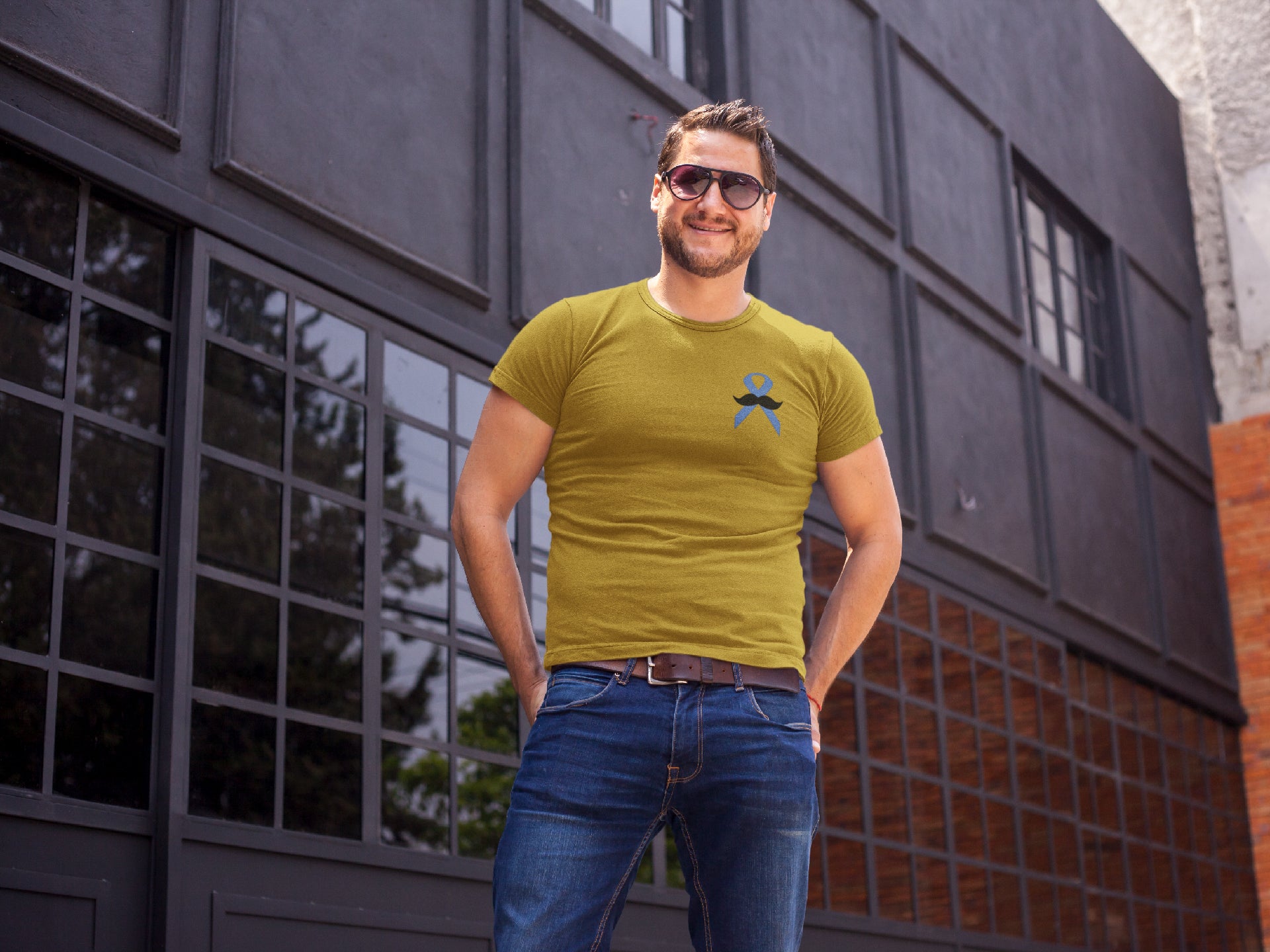 Ein schlichtes Design mit blauem Band und Schnurrbart ist eine minimalistische Möglichkeit, Ihre Unterstützung für die Sache „No Shave November“ zu zeigen.