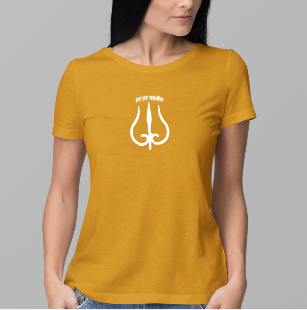 Sommer-T-Shirt für Damen (हर हर महादेव White)