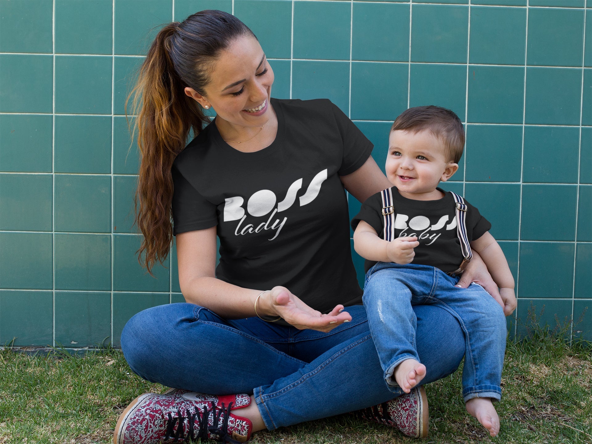 Boss Lady Weiß bedrucktes T-Shirt für Damen