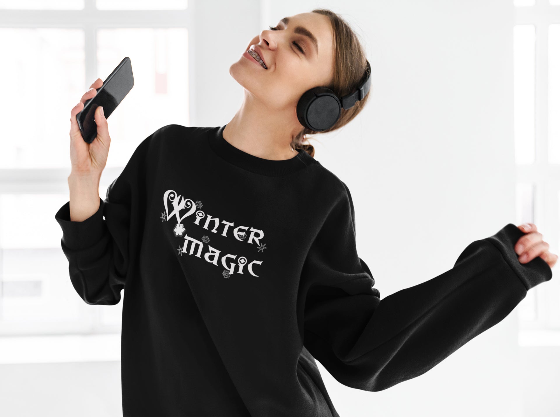 Der Text „Winter Magic“ in Kombination mit dem Schneeflocken-Print verleiht Ihrer Wintergarderobe auf jeden Fall Magie.