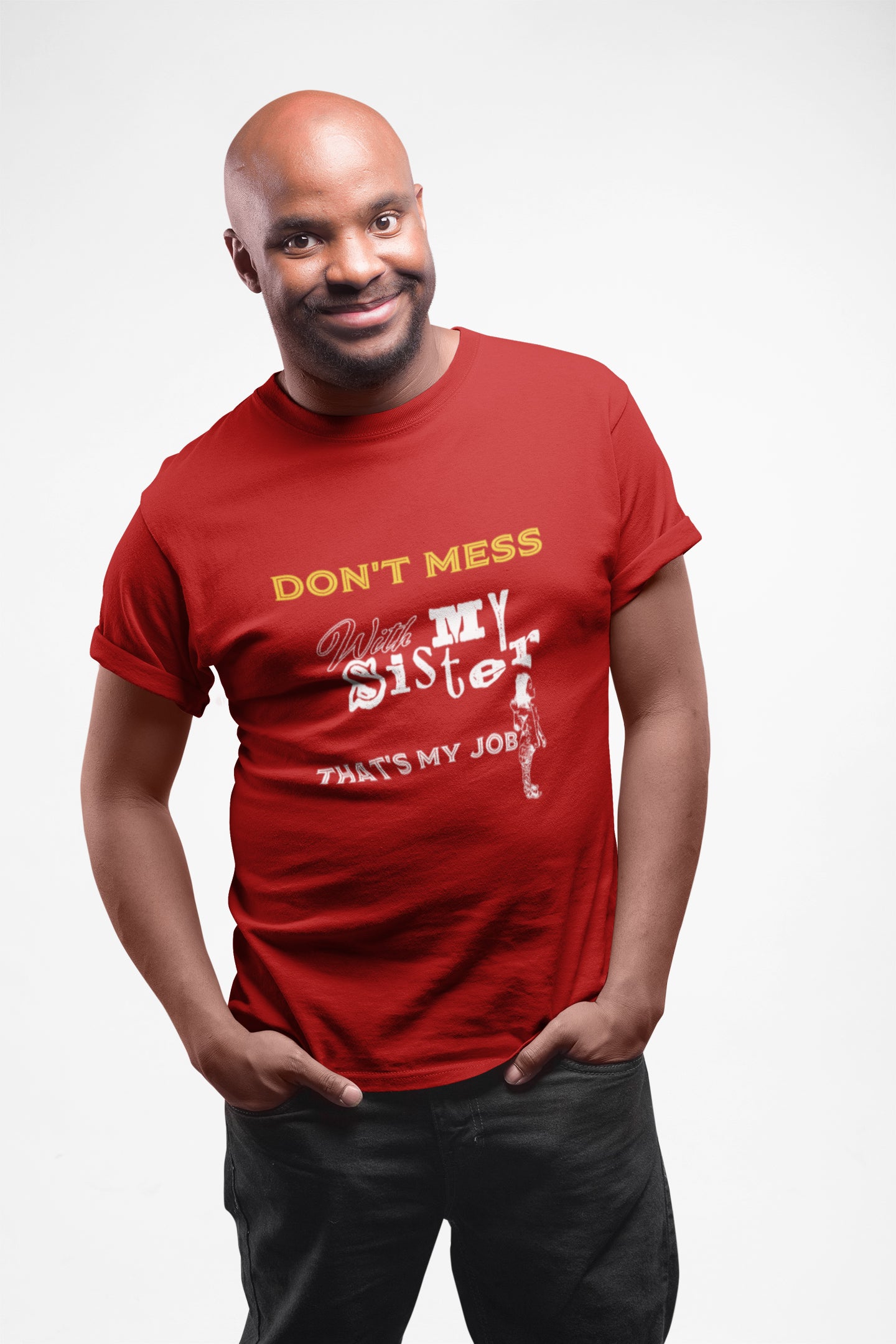 The text " Don't Mess With My Sister, That's My Job " is apt for all the mischievous brothers who love to trouble their sisters.