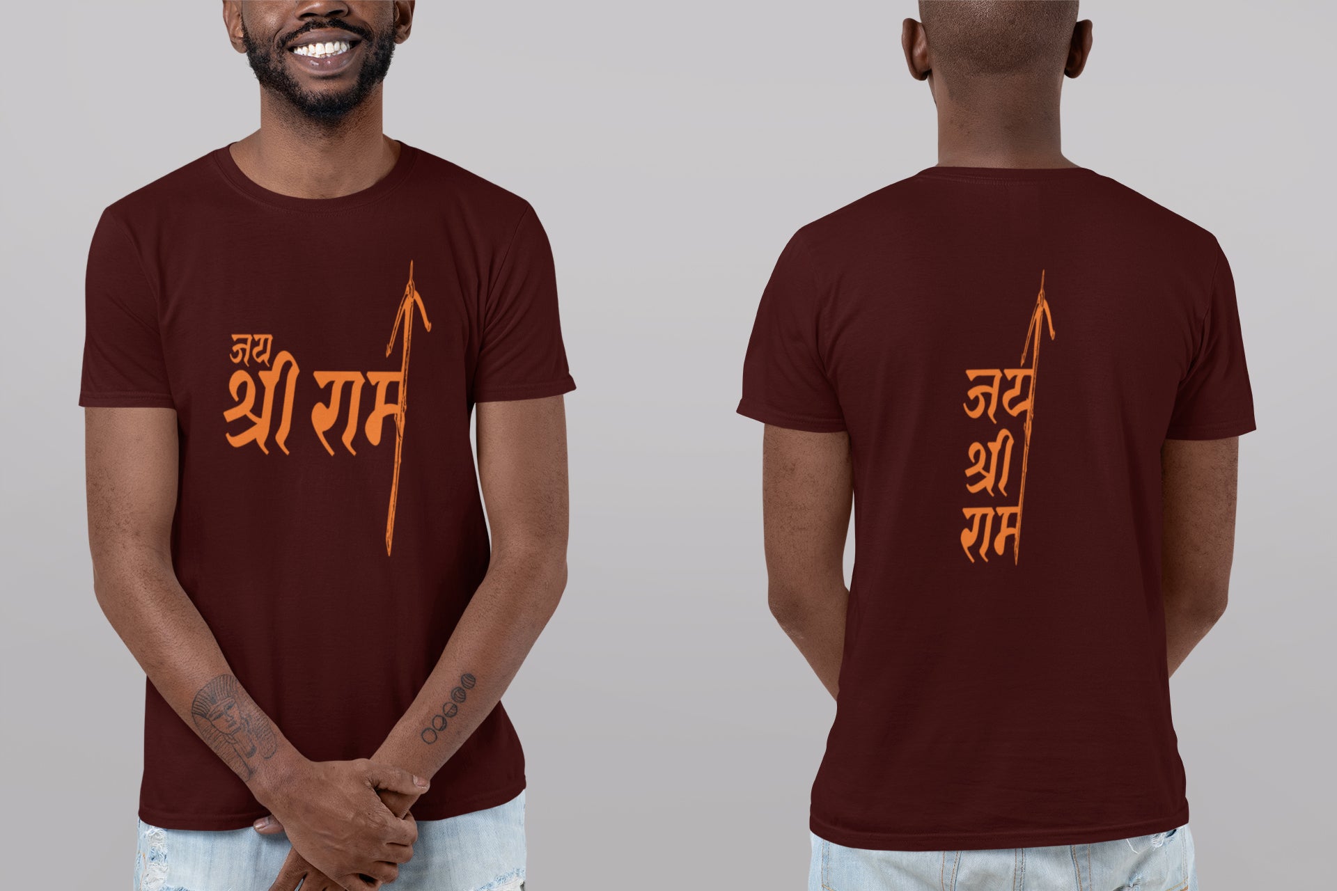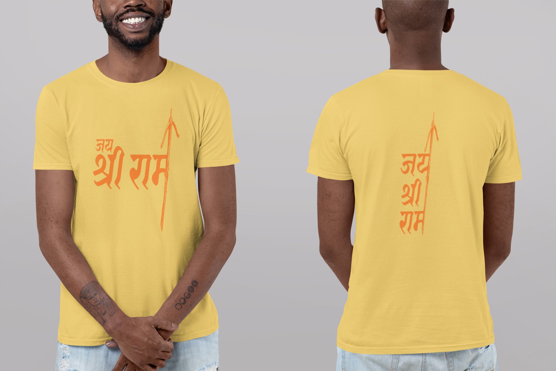 Jai Shri Ram Front Back Orange Print Summert T-shirt For Men