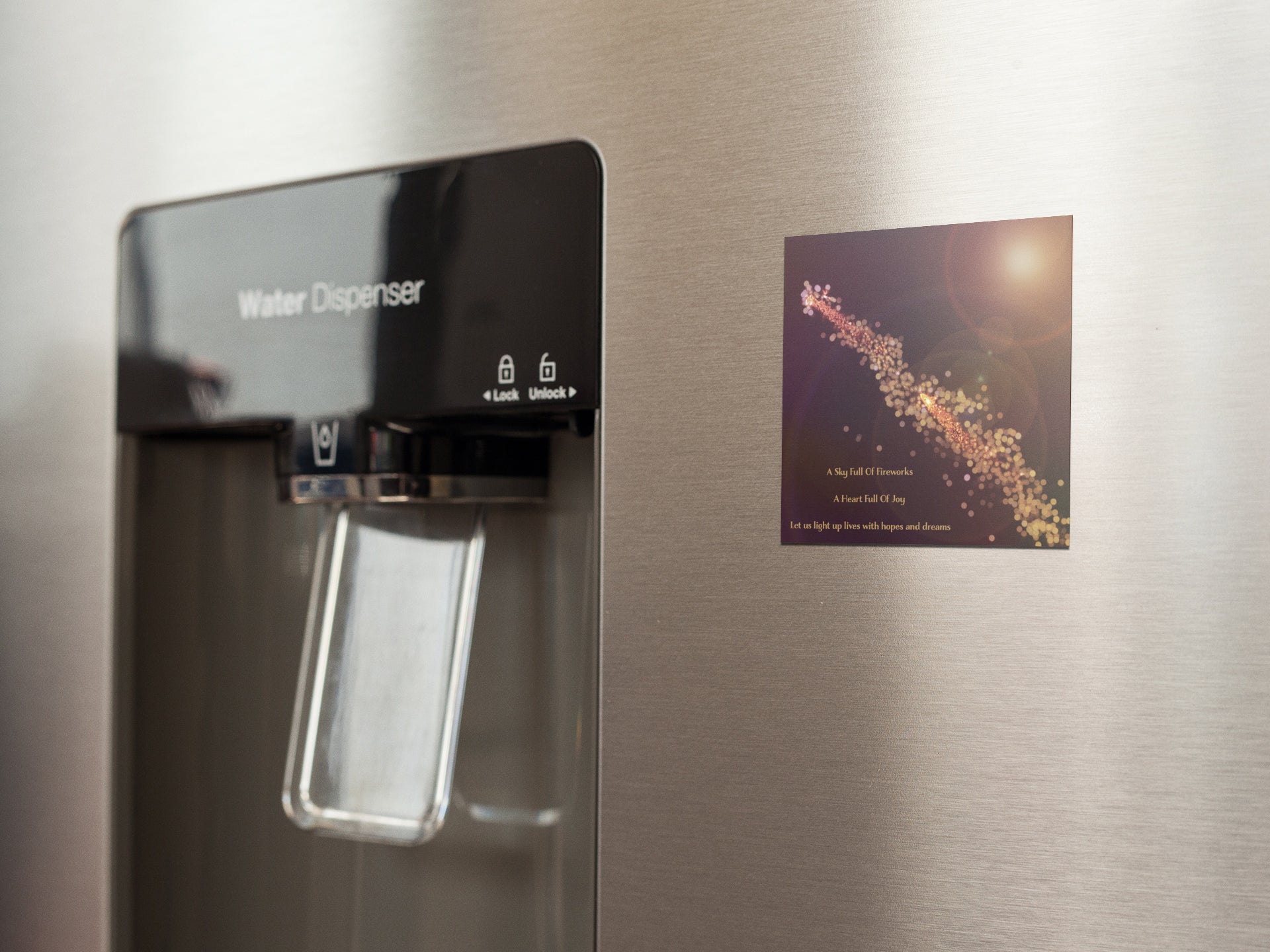 Firecrackers in the sky and a happy insprational text is all you need for your refrigerator.