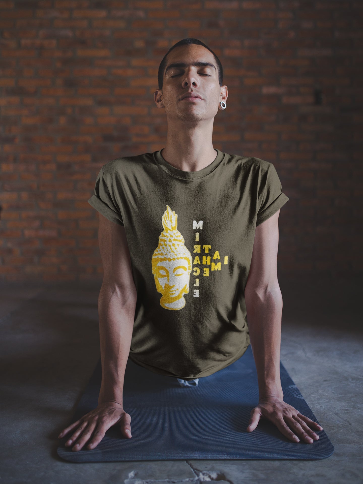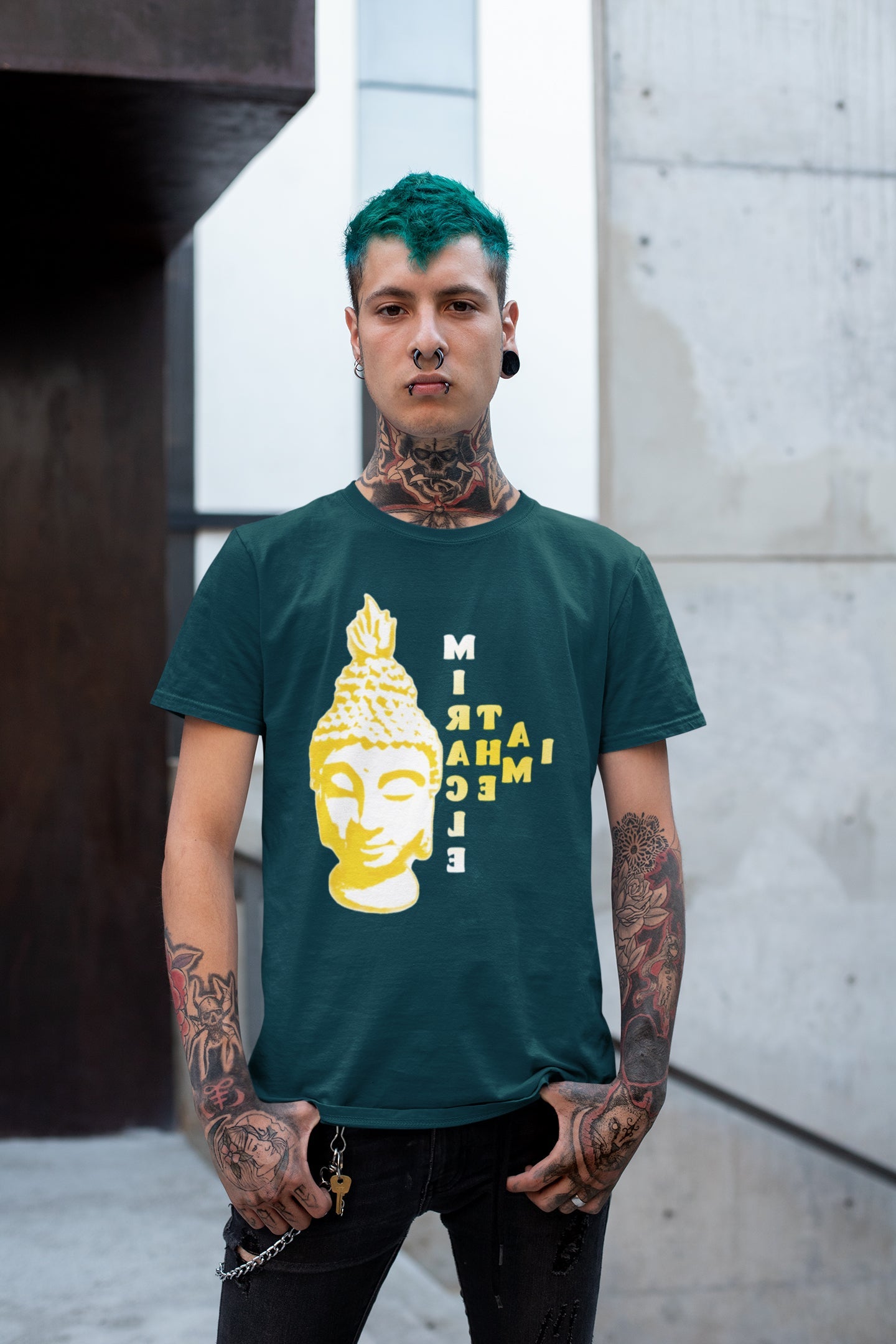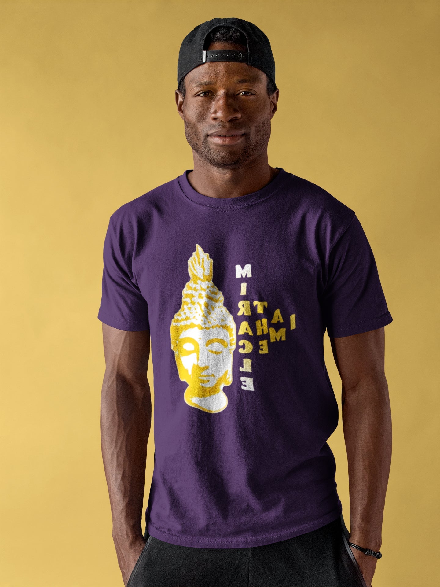 🙏 इस डिज़ाइन में टाइपोग्राफी और इमेजरी का सामंजस्यपूर्ण मिश्रण है, जिसमें बुद्ध की शांत उपस्थिति के साथ "आई एम द मिरेकल" शब्दों को खूबसूरती से एकीकृत किया गया है। जीवंत रंग और जटिल विवरण शांति, ज्ञान और ज्ञान की आभा पैदा करते हैं।