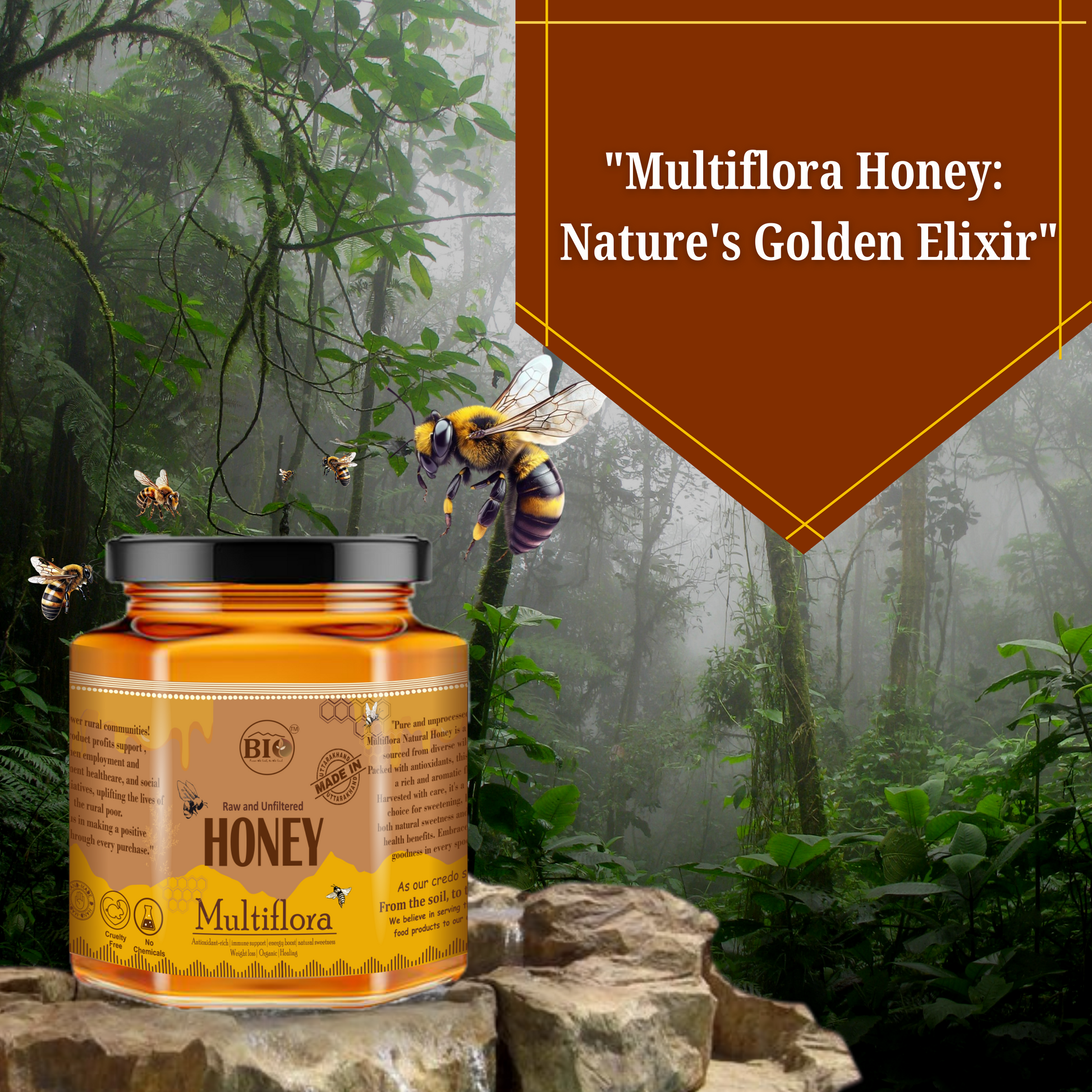 Sourced directly from the diverse floral landscapes of Uttarakhand, this isn't just honey; it's a testament to the buzzing collaboration of nature's finest. Our Purta Multi Flora Honey is 100% raw and natural, meaning it's completely unfiltered and unprocessed. This preserves every beneficial enzyme and nutrient, delivering a truly authentic taste of the Himalayas and ensuring it's rich in antioxidants.
