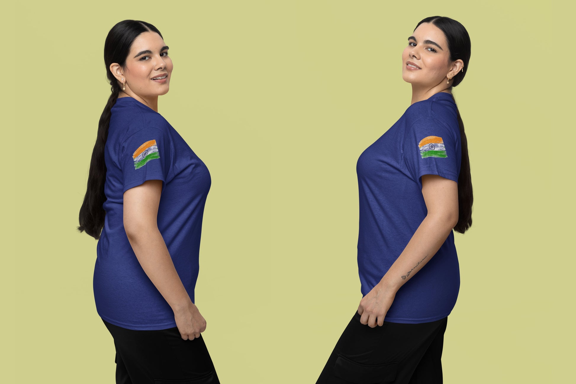 Crafted with meticulous attention to detail, this T-shirt combines comfort and patriotism effortlessly. The waving tricolor of saffron, white, and green adorns the sleeves, symbolizing courage, peace, and faith. The minimalist approach ensures that the design captures attention without being overwhelming, making it the perfect choice for individuals who prefer a refined sense of style.