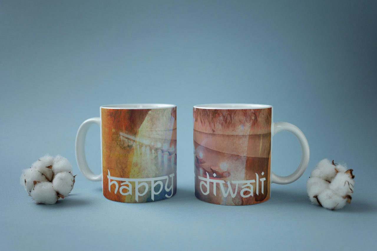 White Coffee Mug ( Happy Diwali Diya Paint Wash )